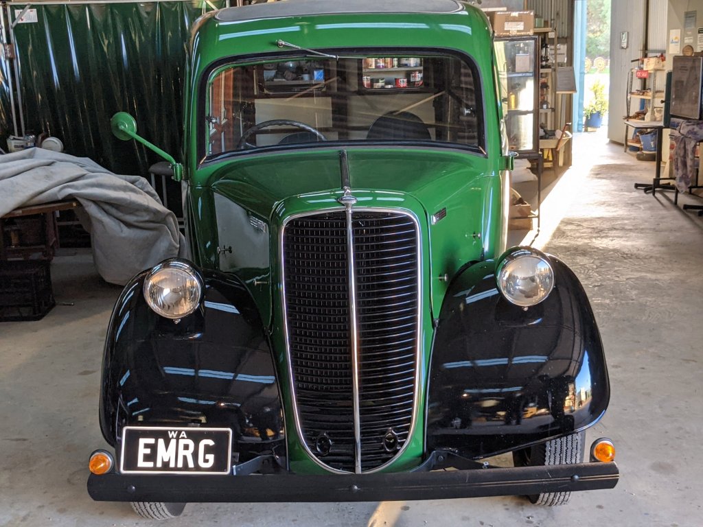 The story of the engine is the original engine was in bits in the van with a hole in the block. I acquired an E93A engine from the Classic English Ford Club in Perth. This was delivered to me by Chris Newman who is a longstanding member of that club. The head required machining and this was done by Des Plecas in his lathe.