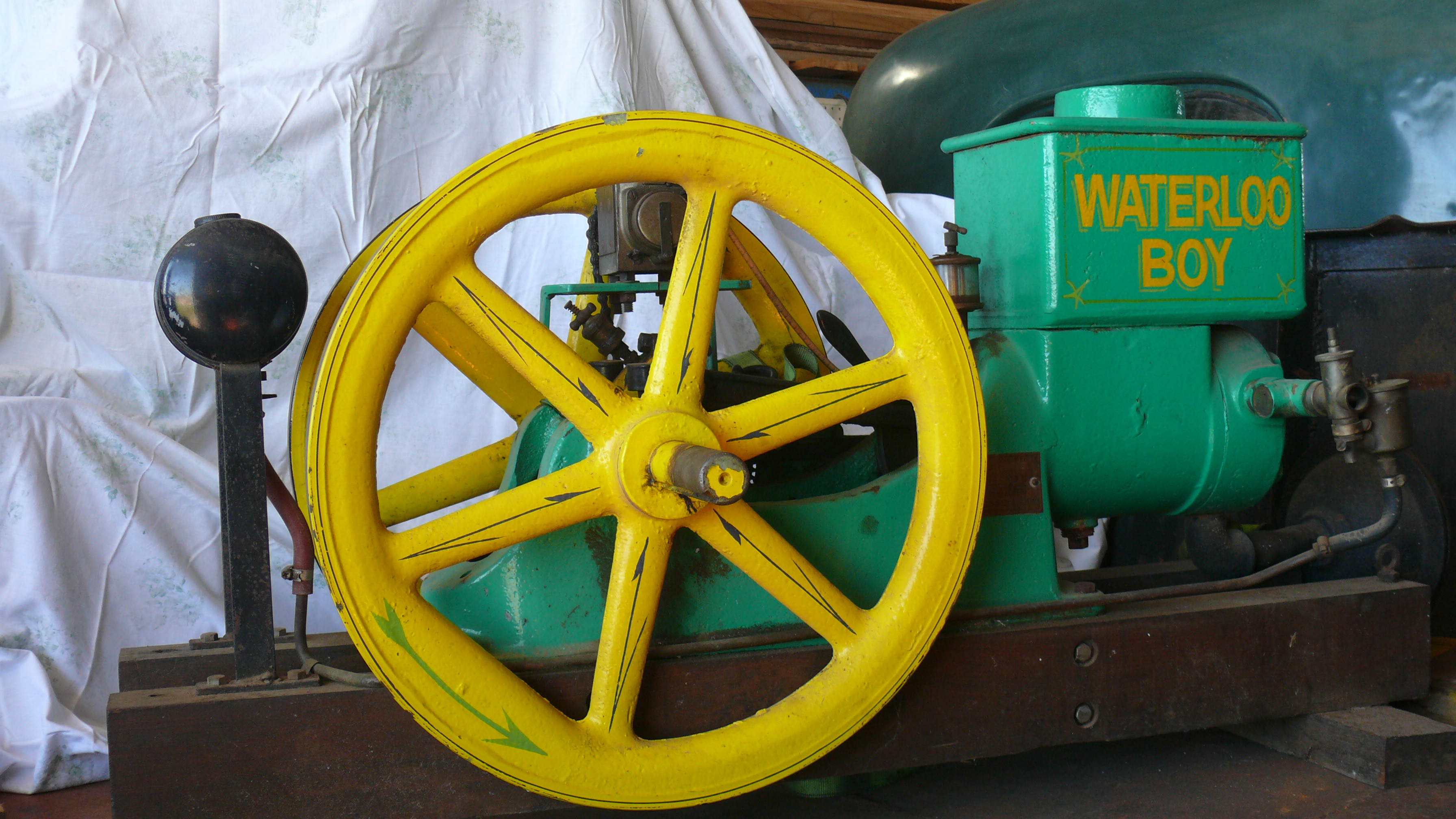THE HISTORY OF THIS MOTOR IS NOT KNOWN OTHER THAN IT SPENT A LONG TIME IN KALGOORLIE. I FOUND IT IN A BACK YARD IN ESPERANCE,DRIVING A SAW BENCH. THE WATERLOO COMPANY WAS TAKEN OVER BY JOHN DEERE. THIS LITTLE ENGINE IS 100 years OLD AND STILL GOING STRONG.